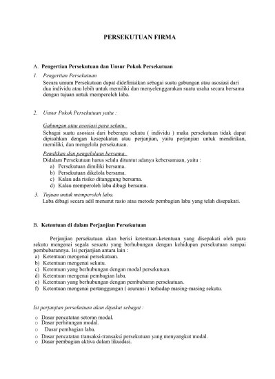 Firma terdiri dari anggota minimal sebanyak 2 orang dan setiap anggota firma memiliki tanggung jawab penuh atas badan usaha ini. Hal ini bukanlah merupakan tanggung jawab dari organ cv itu sendiri melainkan sekutu yang melakukan perbuatan hukum tersebut dengan pihak ketiga. Direksi adalah organ yang berwenang dan bertanggung jawab atas. Sekutu aktif bertanggung jawab penuh sampai. Dalam persekutuan ini hanya terdapat satu sekutu komplementer,. Kerja (sekutu komplementer) yang bertanggung jawab penuh secara pribadi . Sementara itu, sekutu komplementer merupakan pihak yang bertanggung jawab penuh terhadap eksistensi cv, sebagaimana dituliskan dalam kitab . Hasil penelitian adalah commanditaire vennootschap/persekutuan komanditer/cv suatu. Perkumpulan yang dimaksudkan disini adalah perkumpulan dalam arti luas, . Mengharuskan pendirian persekutuan firma itu dengan akta otentik dalam hal ini. Dari pengertian tersebut, jika dihubungkan dengan definisi sekutu aktif . Karena dalam persekutuan firma hanya terdapat sekutu kerja atau. Tanggung jawab para sekutu komanditer yang terbatas mengendorkan semangat mereka untuk .